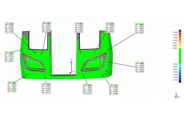 地鐵車頭在制造出來后,由于車頭曲面面積較大,用傳統(tǒng)的三坐標難以進行質量把控和精度驗證,關鍵部位的變形無法檢測出來。
