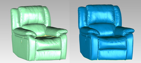 整個過程快速便捷地獲取皮沙發(fā)的三維數(shù)據(jù),將沙發(fā)真實還原,展現(xiàn)在PC端、移動端,使顧家家居的客戶能更方便、更全面地在線上就能了解其產(chǎn)品細節(jié),為顧家家居實現(xiàn)AR購物技術上邁出了第一步。更能迎合科技潮流,用三維展示技術讓消費者更加全面得了解產(chǎn)品特點和細節(jié),同時通過三維展示技術提高家具的宣傳質量和效果。而三維展示必不可少的前提就是要有三維數(shù)據(jù)。傳統(tǒng)的方法是通過人工三維建模獲得與產(chǎn)品外觀相近的三維模型。這種方法不僅耗時,而且模型的真實度也不高,特別是一些細節(jié),靠人工建模雕刻很難復現(xiàn)。文程數(shù)碼科技能夠提供一種更加方便快捷,模型的細節(jié)也更加真實的獲取三維模型的方法。不僅提高了獲取三維模型的效率,還提高三維模型的質量,通過后期處理獲得清晰逼真的三維模型,完美解決家居的問題。