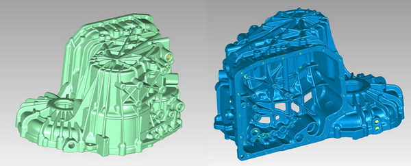 變速箱殼體的加工質量直接影響變速箱內部部件的精度、性能和壽命。因此,汽車變速箱殼體的質量把控對汽車的性能、質量與安全尤為重要。然而,汽車變速箱蓋外表輪廓結構極為復雜,凹凸曲面非常多,傳統(tǒng)的檢測方式工作量非常大、耗時且不精準。三維掃描儀的出現(xiàn)顛覆了變速箱殼體檢測過程,大大提升了變速箱殼體檢測的效率。